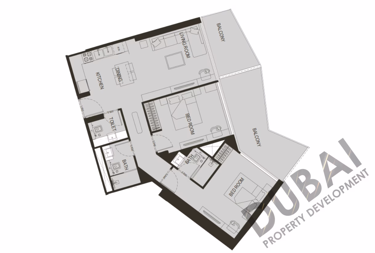 The development comprises 501 residences, including studios and 1–3 bedroom apartments, each thoughtfully crafted with spacious layouts, high-quality finishes, and a seamless blend of style and functionality.