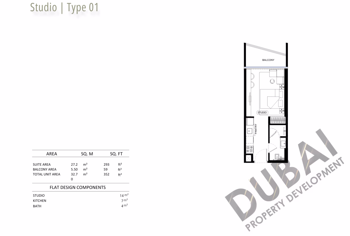 Binghatti Hillcrest offers a curated selection of studios, 1-bedroom, and 2-bedroom apartments, along with commercial spaces on the lower levels.